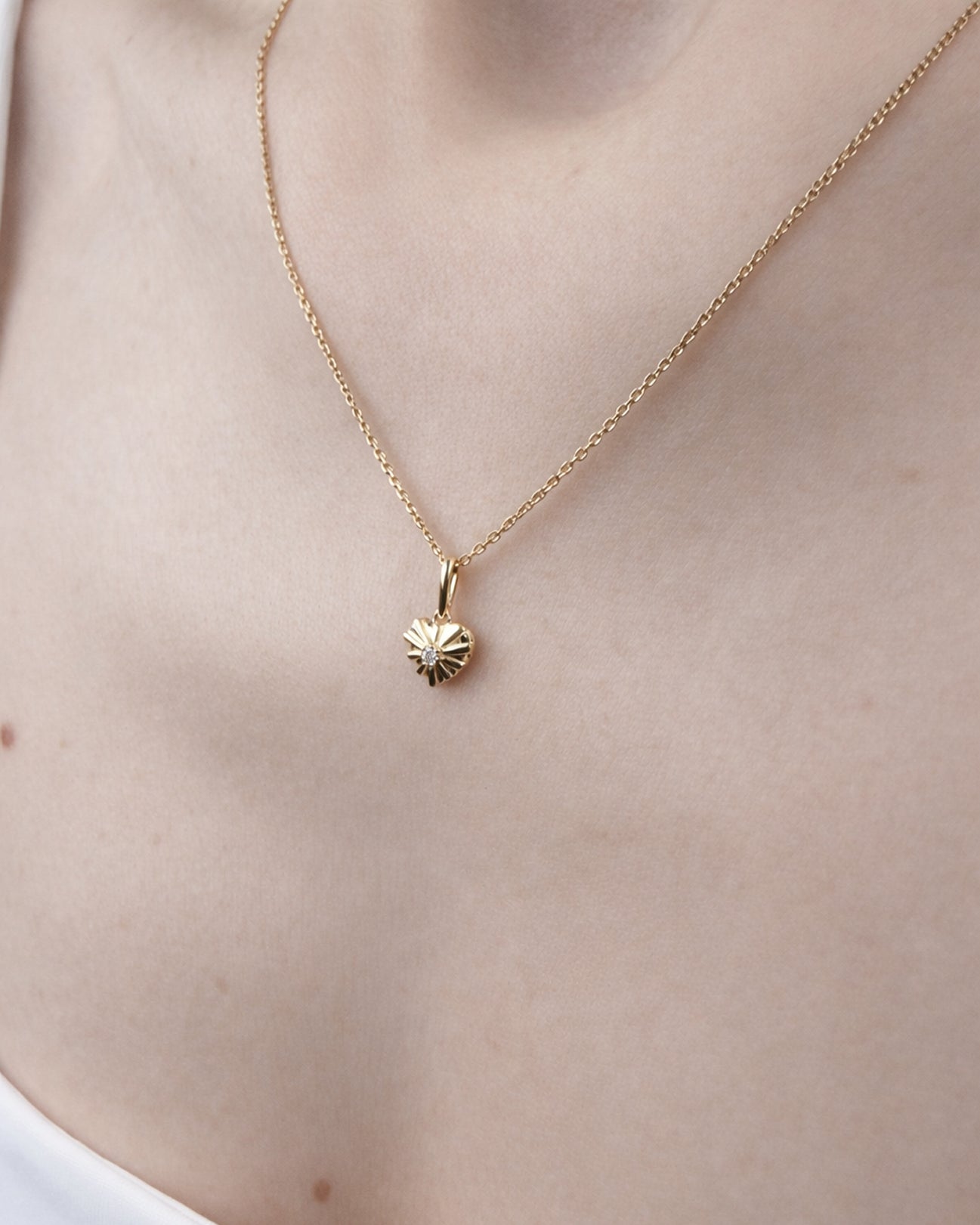 A solid gold heart pendant set with a natural diamond. Finely crafted for everyday wear, this diamond heart pendant adds a subtle sparkle to a classic gold necklace.