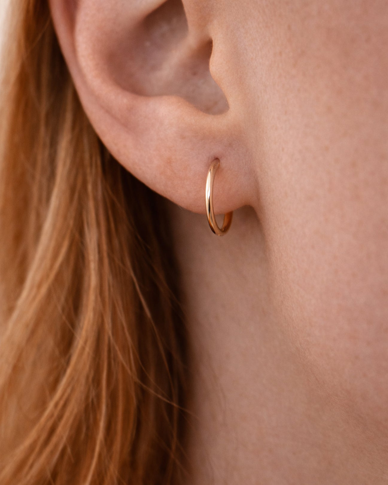 Our only tube earrings - 13 mm, crafted in solid gold with a hollow, lightweight design that stays comfortable all day and is fully nickel-free.